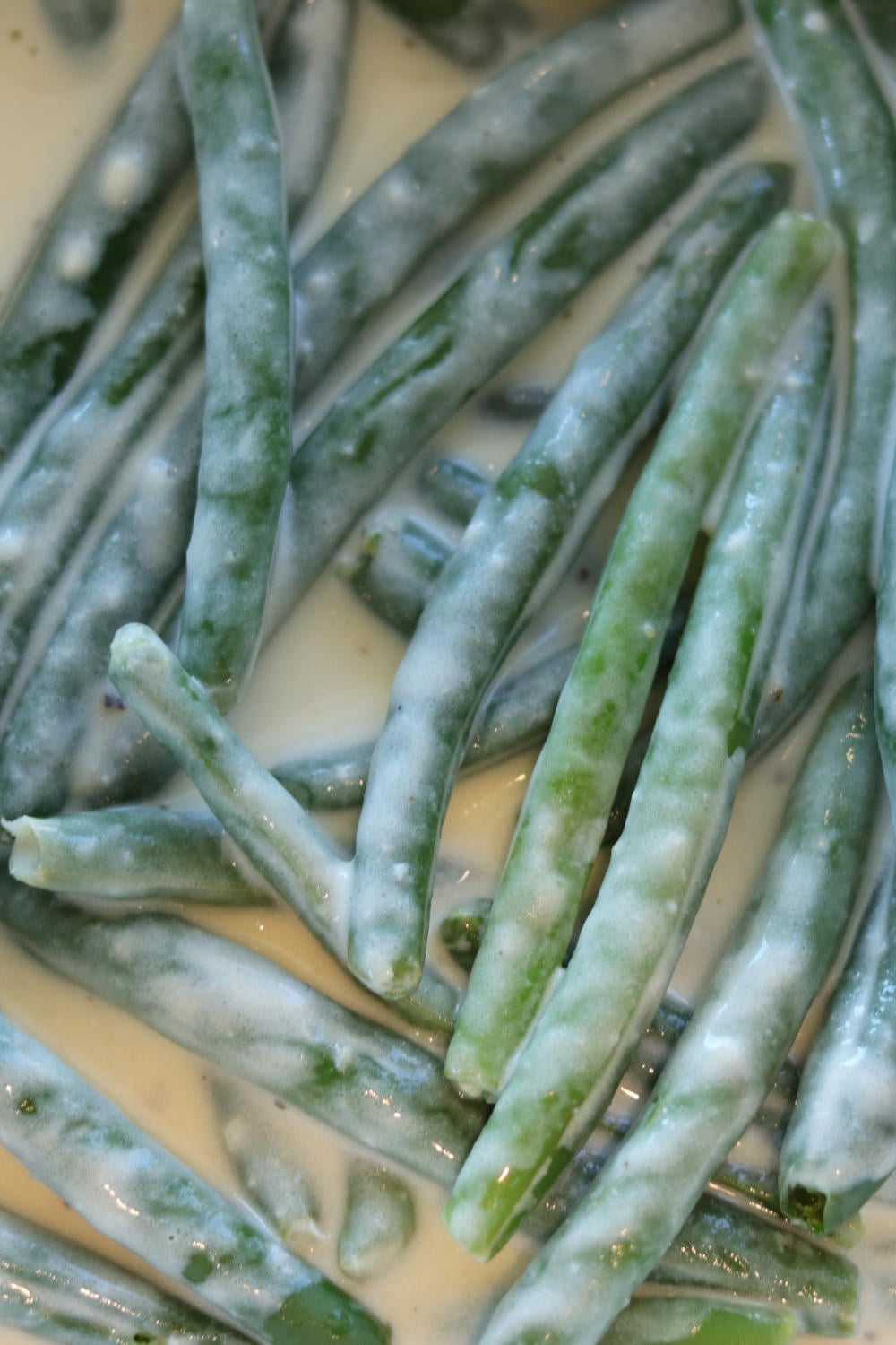 - Don't overcook the green beans: Boil just until bright green and crisp-tender; they'll soften a bit more once the hot cream sauce goes on.