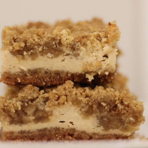 These Maple Cheesecake Bars feature a buttery graham cracker crust, a smooth maple-infused cheesecake filling, and a maple crumble topping. They are truly the perfect dessert for the fall!