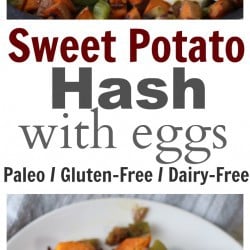 Sweet Potato Hash with Eggs that's a healthy meal option but is also crazy easy to make is my favorite go-to meal on a busy weeknight! This is a great dairy-free, gluten-free, paleo recipe that's perfect for a clean eating diet!